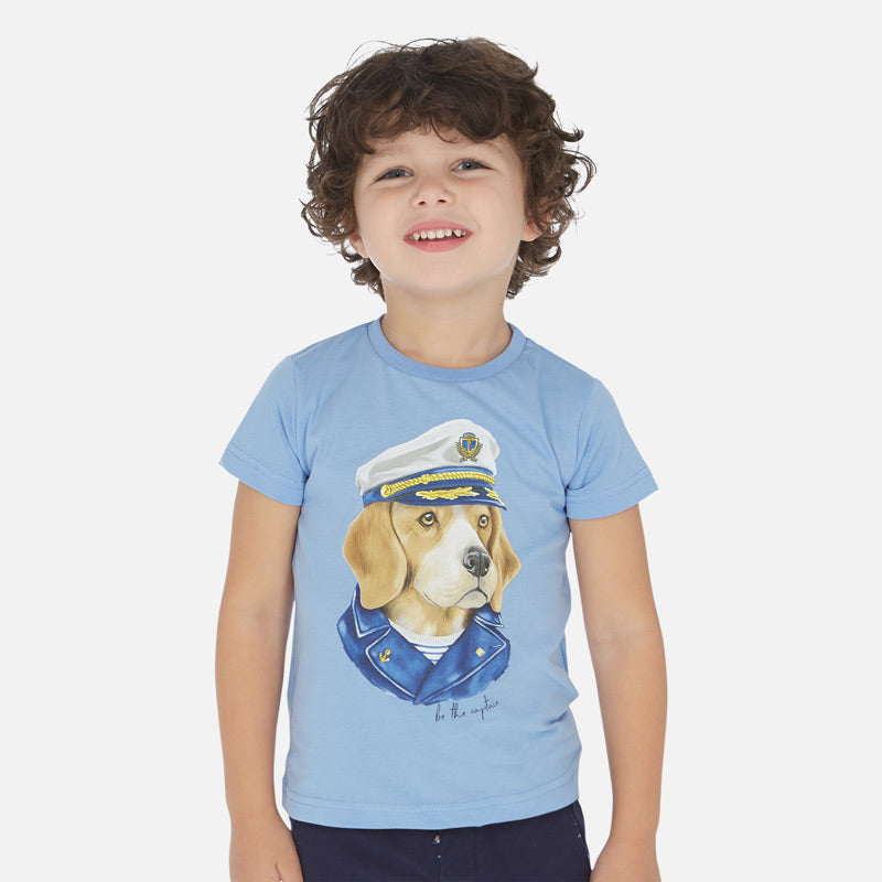T-shirt à manches courtes pour garçon. Col rond. Tissu 100% coton. Éléments décoratifs: dessin à l'avant.
