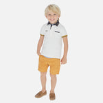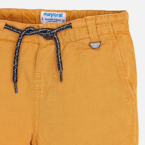 Bermuda pour garçon. Fermeture avec un seul bouton. Cordon de serrage ajustable élastique à la taille Tissu de lin d'aspect frais et actuel. Poches fonctionnelles à l'avant et à l'arrière du vêtement. Pour des raisons de sécurité, les petites tailles (2-5 ans) ont une fermeture éclair simulée. Cet article présente une teinture spéciale qu'elle peut rendre une finition pas uniforme ou la couleur peut varier avec les lavages.