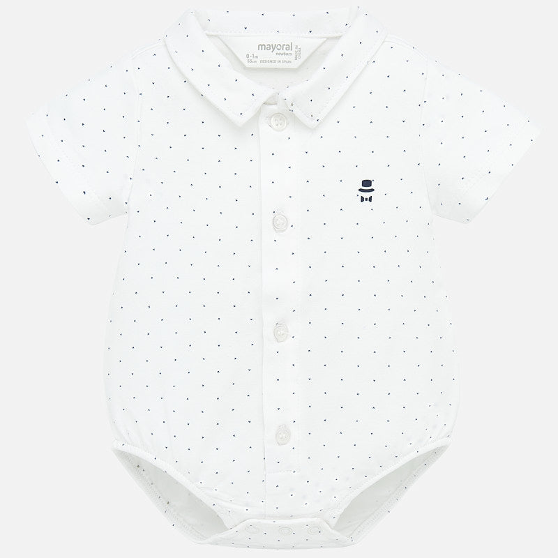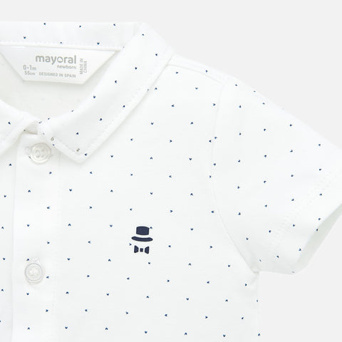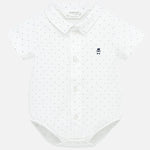 Body à manches courtes pour bébé garçon nouveau-né. Col chemise. Fermeture par boutons pression. Tissu doux en coton élastique.