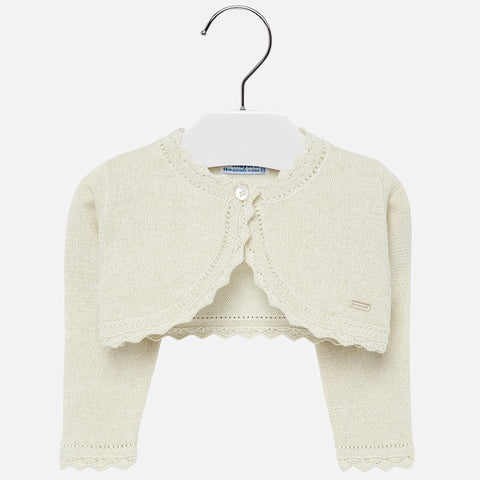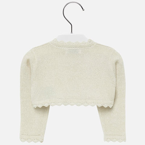 Cardigan à manches longues pour bébé fille. Col rond avec des détails contrastés. Modèle de notre collection de vêtements basiques au design classique, idéal pour compléter tout type d'ensemble. Fermeture avec un seul bouton sur l'encolure avant. Tricot maille avec un toucher doux et agréable. Éléments décoratifs: détails ajourés.