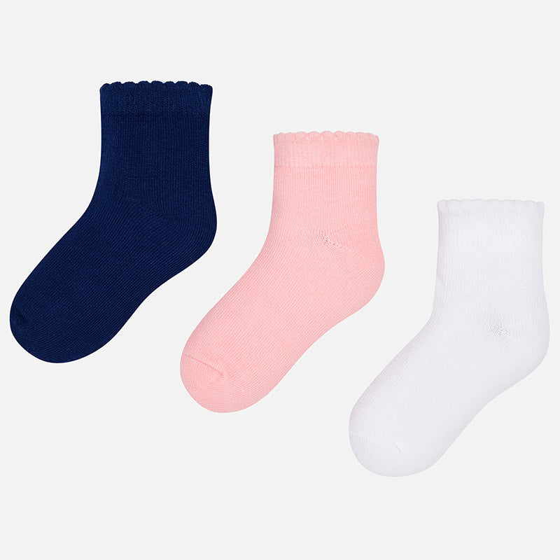Ensemble pratique de trois paires de chaussettes à la cheville pour fille. Tissu doux en coton élastique.