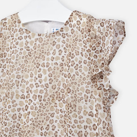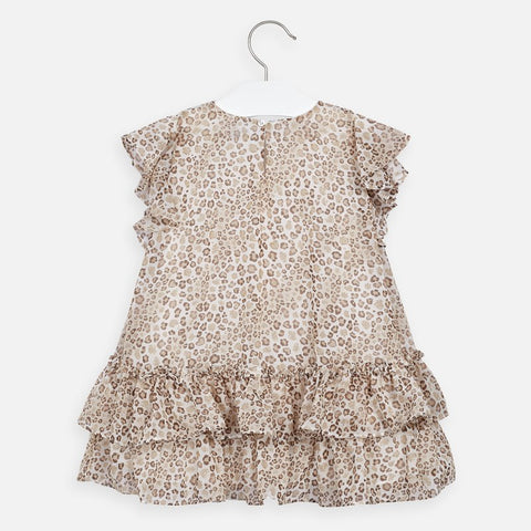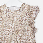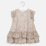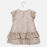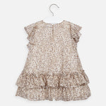 Robe à manches courtes avec des détails de volants pour fille. Col rond. Petite ouverture dans le dos avec fermeture par bouton pour faciliter le passage du vêtement. Tissu de bambula très fluide pour les tenues les plus fraîches. Modèle avec volants.