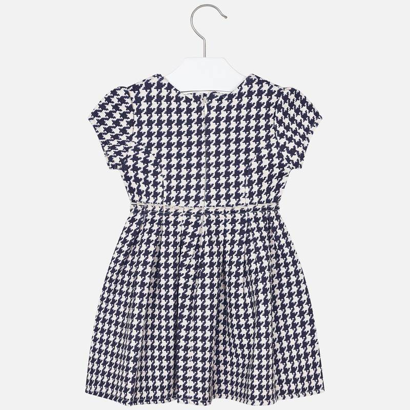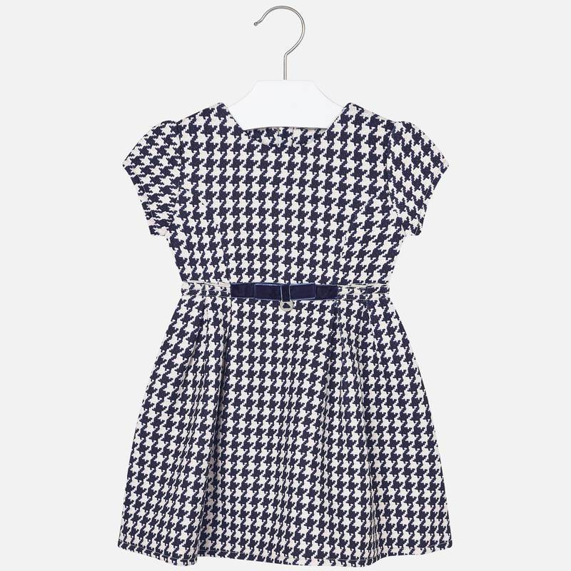 Robe à manches courtes pour fille. Col rond. Coupe cintrée à la taille. Ouverture arrière avec fermeture à glissière invisible. Tissu tricot confortable. Modèle bouclé. Éléments décoratifs: nœud. Design imprimé.
