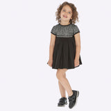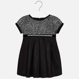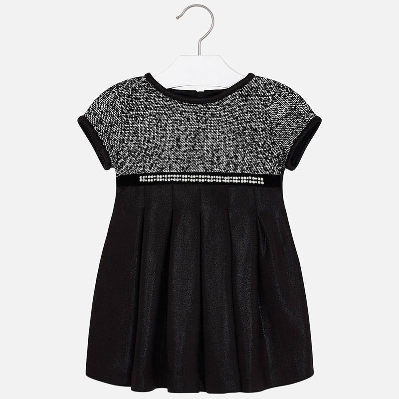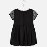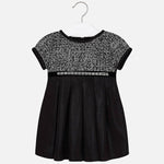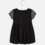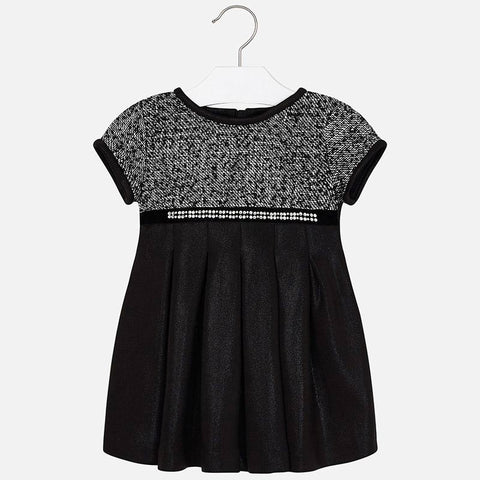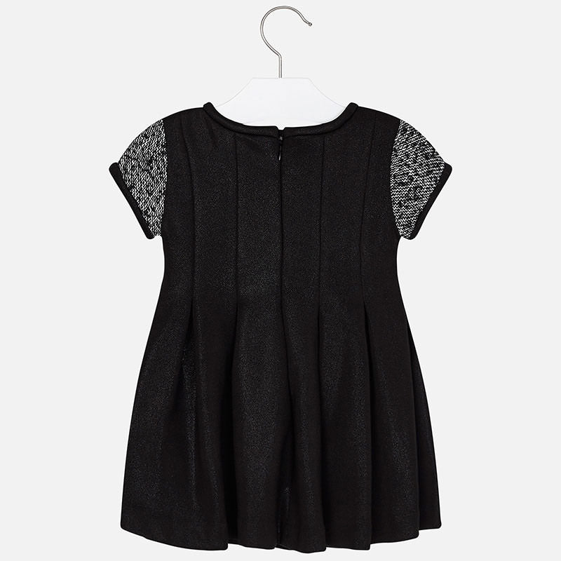 Robe à manches courtes pour fille. Col rond. Ouverture arrière avec fermeture à glissière invisible. Tissu chaud, élégant et sophistiqué pour les occasions les plus spéciales. Modèle avec doublure intérieure. Modèle avec plis plats. Éléments décoratifs: ruban contraste sur la taille, strass. Pour des raisons de sécurité, les petites tailles (2-3 ans) peuvent subir des variations dans les éléments décoratifs utilisés dans la conception.