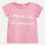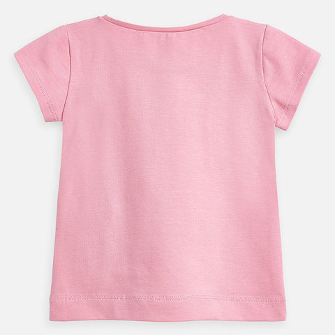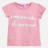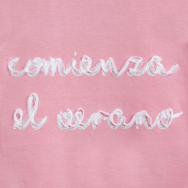 T-shirt à manches courtes pour fille. Col rond. Tissu doux en coton élastique. Éléments décoratifs: motifs décoratifs en tulle.