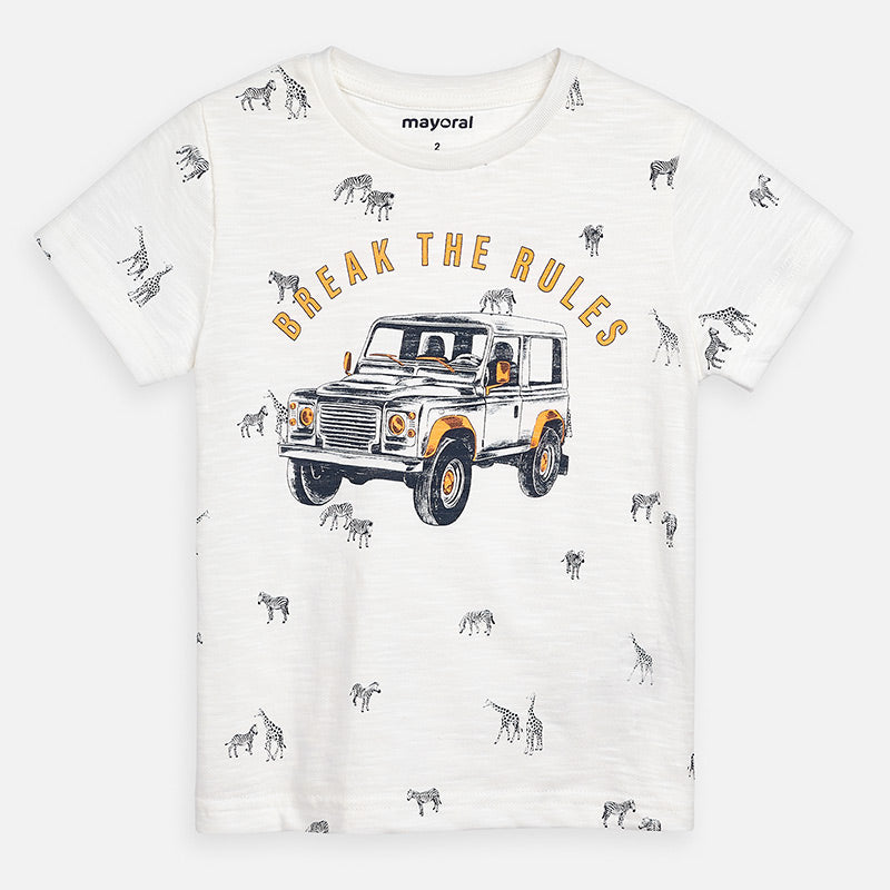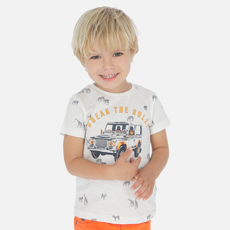 T-shirt à manches courtes pour garçon. Col rond. Tissu 100% coton. Éléments décoratifs: dessin à l'avant. Design imprimé.