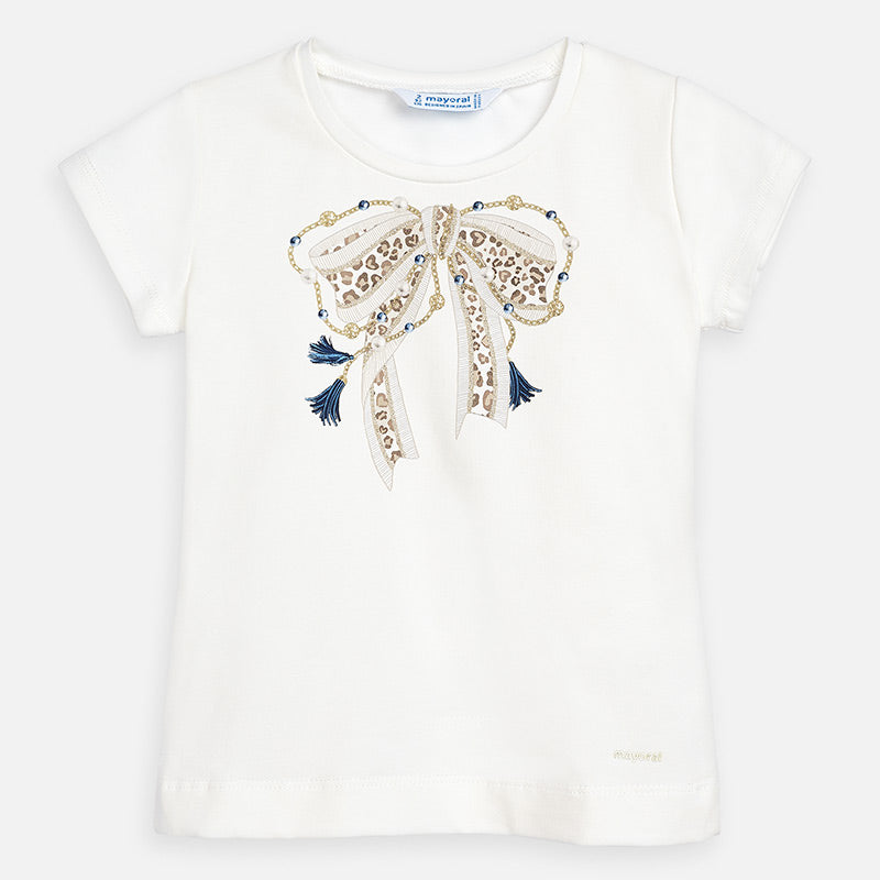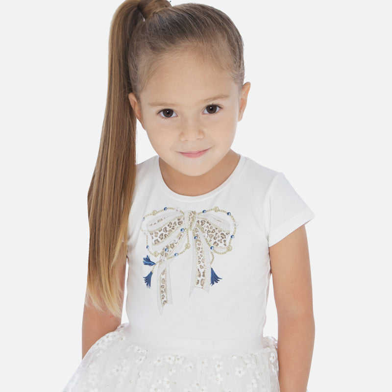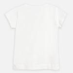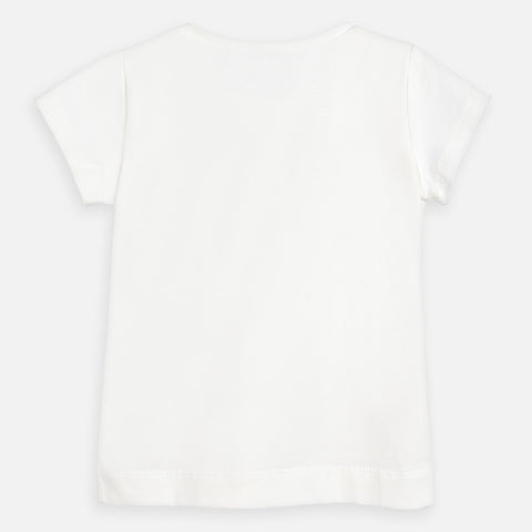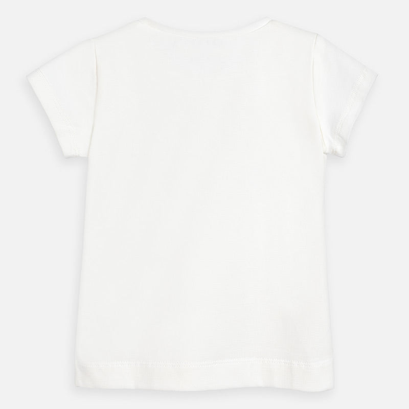 T-shirt à manches courtes pour fille. Col rond. Tissu doux en coton élastique. Éléments décoratifs: dessin à l'avant.