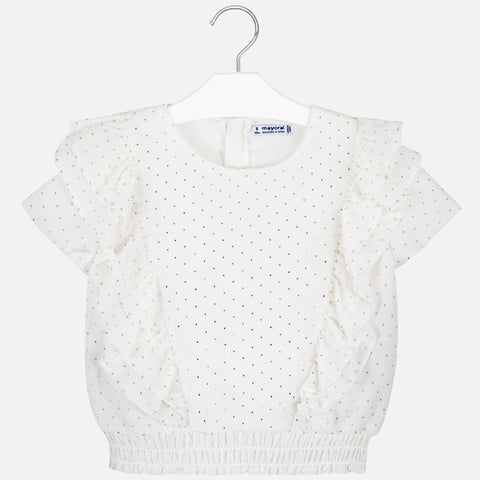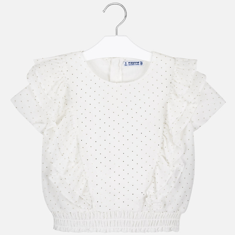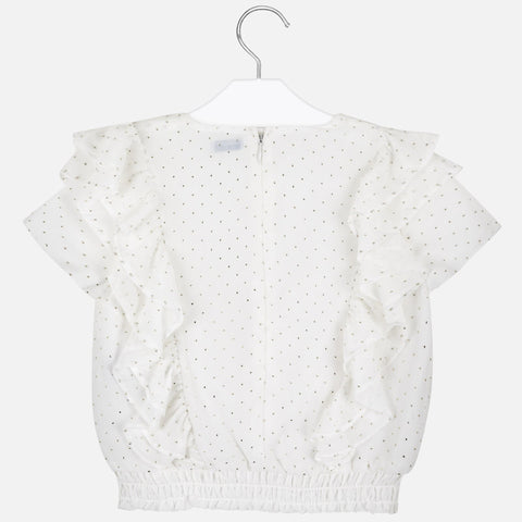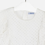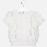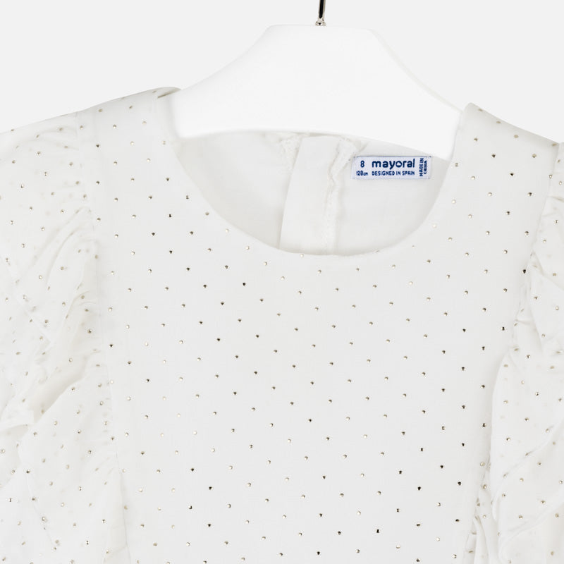 Manteau avec bretelles avec des détails ton sur ton pour fille. Col rond. Fermeture à glissière à l'arrière pour un passage facile et rapide. Tissu en mousseline fluide d'une grande légèreté et fraîcheur. Bas avec bande élastique pour un meilleur ajustement. Éléments décoratifs: volants décoratifs. Design imprimé.